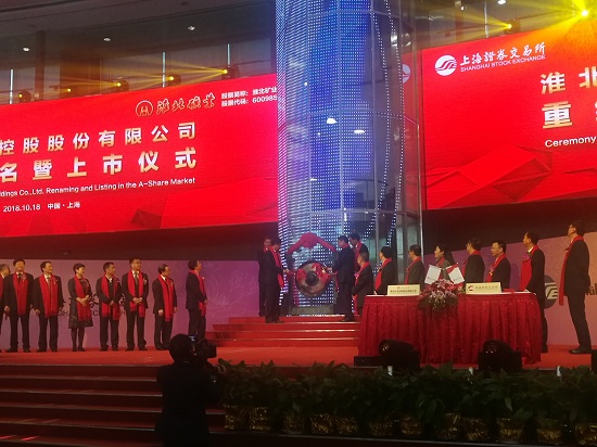 10月18日上午,省高新投公司代管集团公司所投企业淮北矿业股份有限公司通过上市公司安徽雷鸣科化股份有限公司重组上市,在上海证券交易所正式挂牌。省高新投公司总经理李强出席挂牌仪式。