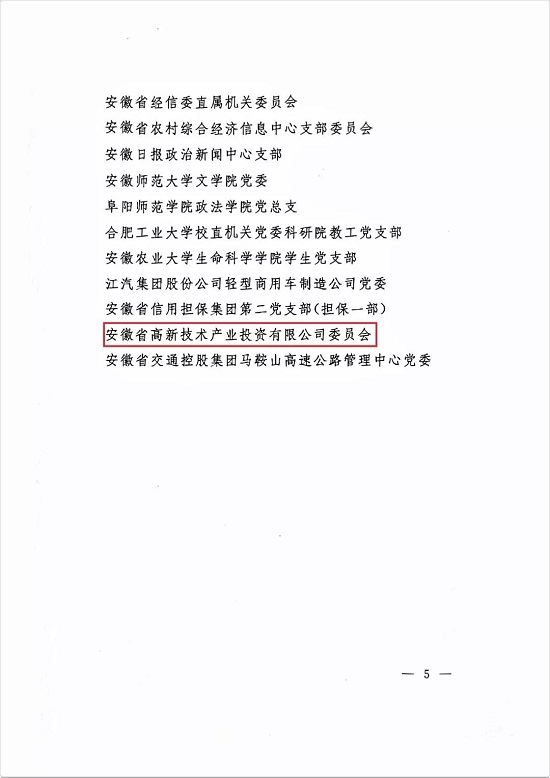 近日,安徽省建设学习型党组织工作领导小组授予高新投公司党委“安徽省第五批学习型党组织建设工作示范点”荣誉称号。