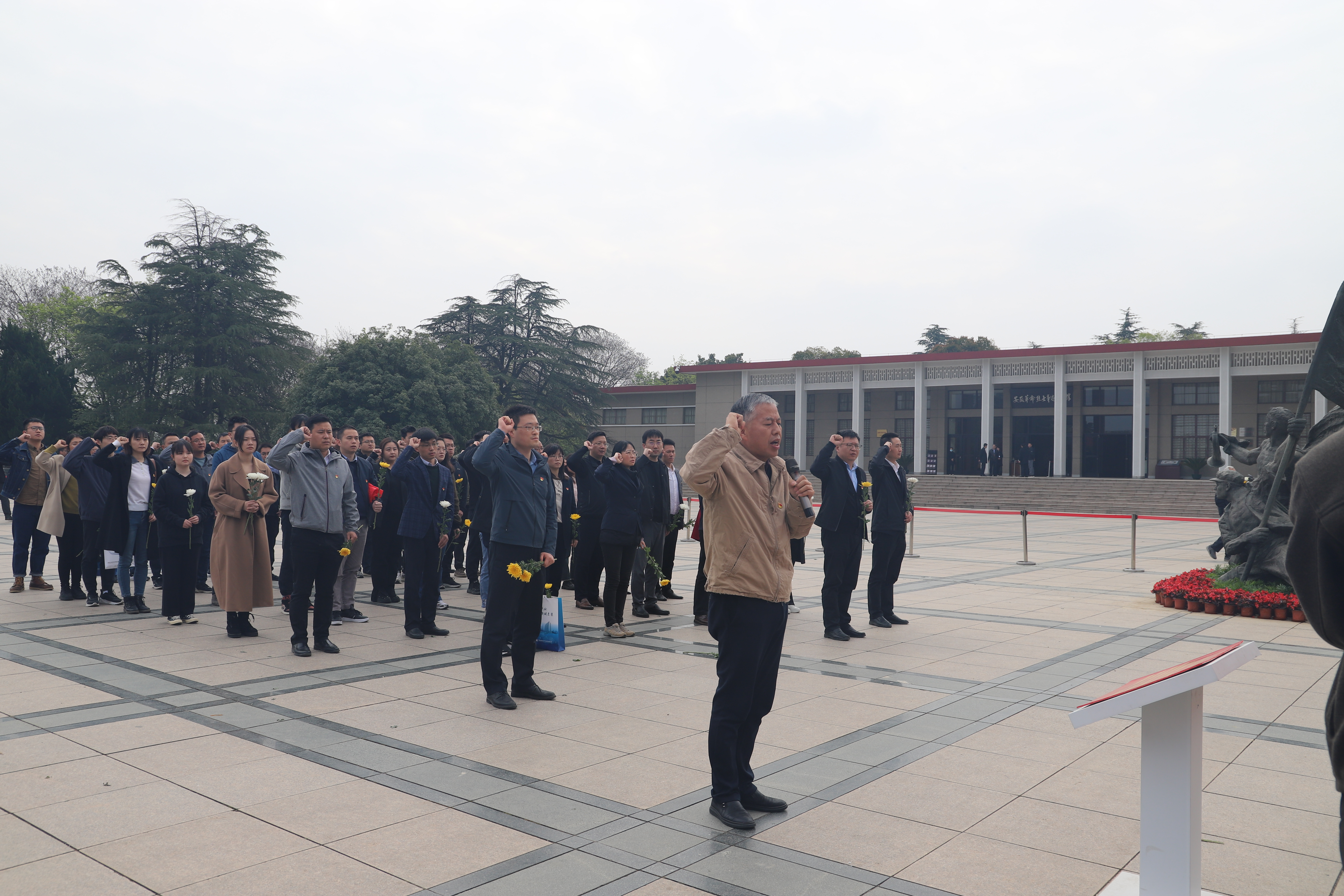 全体党员在革命烈士纪念碑前庄严肃立,党委书记徐先炉带领大家重温入党誓词,通过敬献鲜花、默哀鞠躬表达对革命先烈们的深刻哀思和崇高敬意。